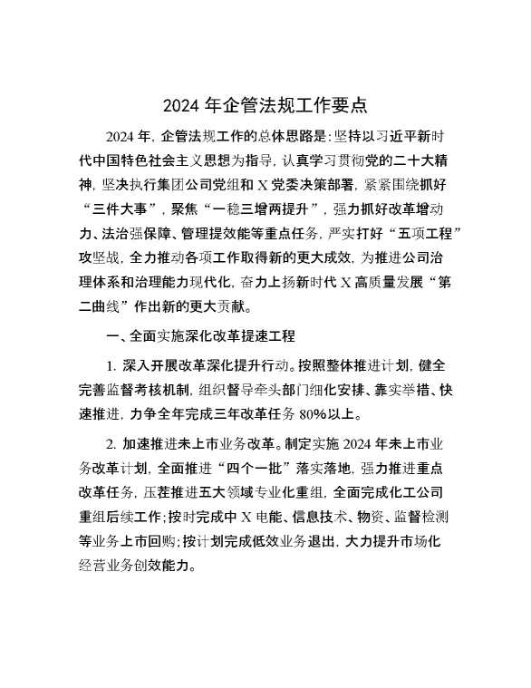 2024年企管法规工作要点 2024-03-29 Word模板 108 购买前,请一定要先点击这里看看,欢迎持续关注,精彩模板每天推送 预览结束,本文件为word文档,一共9页,共4140字,请购买后,下载后查看 购买前,请一定要先点击这里看看,欢迎持续关注,精彩模板每天推送 资源下载下载价格29 RMBVIP免费升级VIP点击检测网盘有效后购买有任何充值和下载问题请加微信:xuexixuexi66 0 总结汇报