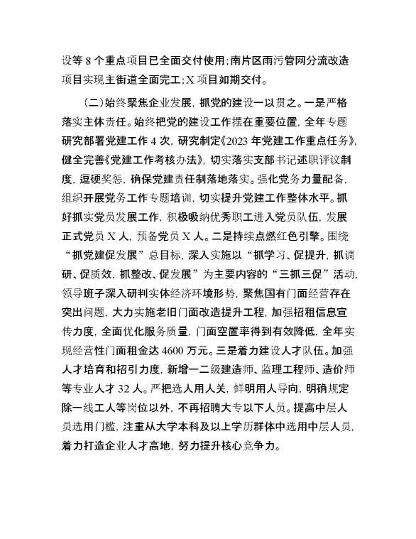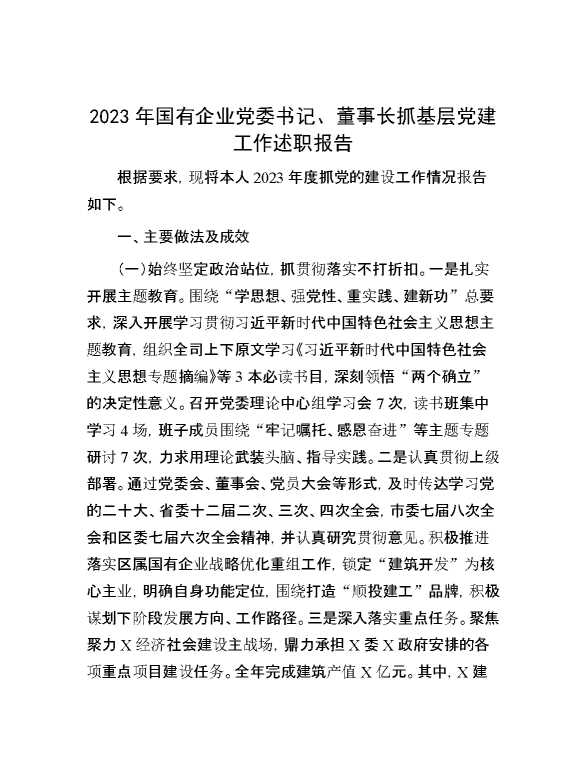 2023年国有企业党委书记、董事长抓基层党建工作述职报告 2024-03-29 Word模板 109 购买前,请一定要先点击这里看看,欢迎持续关注,精彩模板每天推送 预览结束,本文件为word文档,一共7页,共3549字,请购买后,下载后查看 购买前,请一定要先点击这里看看,欢迎持续关注,精彩模板每天推送 资源下载下载价格29 RMBVIP免费升级VIP点击检测网盘有效后购买有任何充值和下载问题请加微信:xuexixuexi66 0 总结汇报