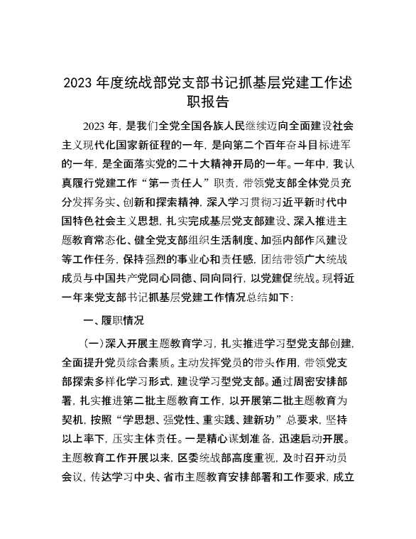 2023年度统战部党支部书记抓基层党建工作述职报告 2024-03-29 Word模板 108 购买前,请一定要先点击这里看看,欢迎持续关注,精彩模板每天推送 预览结束,本文件为word文档,一共5页,共2241字,请购买后,下载后查看 购买前,请一定要先点击这里看看,欢迎持续关注,精彩模板每天推送 资源下载下载价格29 RMBVIP免费升级VIP点击检测网盘有效后购买有任何充值和下载问题请加微信:xuexixuexi66 0 总结汇报