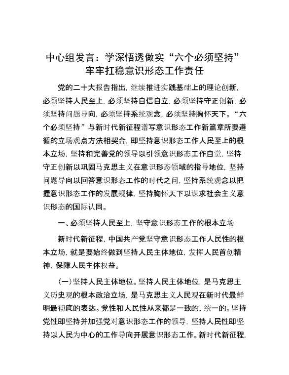 中心组发言:学深悟透做实“六个必须坚持” 牢牢扛稳意识形态工作责任 2024-03-29 Word模板 110 购买前,请一定要先点击这里看看,欢迎持续关注,精彩模板每天推送 预览结束,本文件为word文档,一共9页,共4484字,请购买后,下载后查看 购买前,请一定要先点击这里看看,欢迎持续关注,精彩模板每天推送 资源下载下载价格29 RMBVIP免费升级VIP点击检测网盘有效后购买有任何充值和下载问题请加微信:xuexixuexi66 0 演讲发言