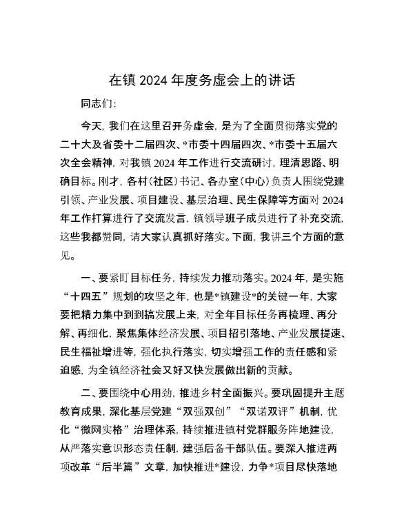 在镇2024年度务虚会上的讲话【28159】 2024-03-29 Word模板 112 购买前,请一定要先点击这里看看,欢迎持续关注,精彩模板每天推送 预览结束,本文件为word文档,一共2页,共947字,请购买后,下载后查看 购买前,请一定要先点击这里看看,欢迎持续关注,精彩模板每天推送 资源下载下载价格29 RMBVIP免费升级VIP点击检测网盘有效后购买有任何充值和下载问题请加微信:xuexixuexi66 0 演讲发言