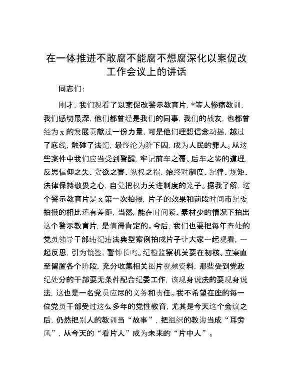 在一体推进不敢腐不能腐不想腐深化以案促改工作会议上的讲话 2024-03-29 Word模板 108 购买前,请一定要先点击这里看看,欢迎持续关注,精彩模板每天推送 预览结束,本文件为word文档,一共10页,共4706字,请购买后,下载后查看 购买前,请一定要先点击这里看看,欢迎持续关注,精彩模板每天推送 资源下载下载价格29 RMBVIP免费升级VIP点击检测网盘有效后购买有任何充值和下载问题请加微信:xuexixuexi66 0 演讲发言