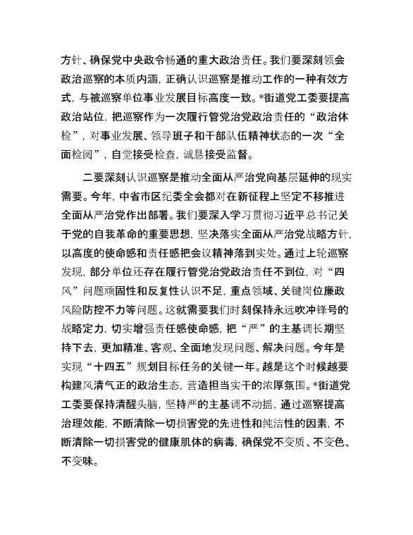 在巡察组进驻街道党工委工作动员会上的讲话 2024-03-29 Word模板 107 购买前,请一定要先点击这里看看,欢迎持续关注,精彩模板每天推送 预览结束,本文件为word文档,一共6页,共2681字,请购买后,下载后查看 购买前,请一定要先点击这里看看,欢迎持续关注,精彩模板每天推送 资源下载下载价格29 RMBVIP免费升级VIP点击检测网盘有效后购买有任何充值和下载问题请加微信:xuexixuexi66 0 演讲发言