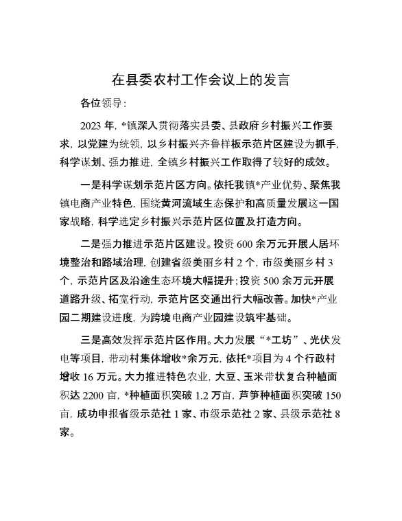 在县委农村工作会议上的发言 2024-03-29 Word模板 142 购买前,请一定要先点击这里看看,欢迎持续关注,精彩模板每天推送 预览结束,本文件为word文档,一共3页,共997字,请购买后,下载后查看 购买前,请一定要先点击这里看看,欢迎持续关注,精彩模板每天推送 资源下载下载价格29 RMBVIP免费升级VIP点击检测网盘有效后购买有任何充值和下载问题请加微信:xuexixuexi66 0 演讲发言