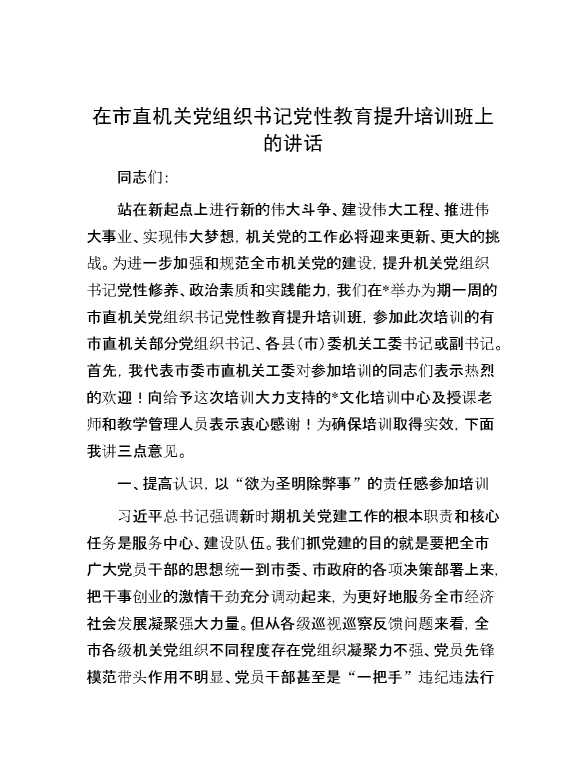 在市直机关党组织书记党性教育提升培训班上的讲话 2024-03-29 Word模板 112 购买前,请一定要先点击这里看看,欢迎持续关注,精彩模板每天推送 预览结束,本文件为word文档,一共4页,共1745字,请购买后,下载后查看 购买前,请一定要先点击这里看看,欢迎持续关注,精彩模板每天推送 资源下载下载价格29 RMBVIP免费升级VIP点击检测网盘有效后购买有任何充值和下载问题请加微信:xuexixuexi66 0 演讲发言