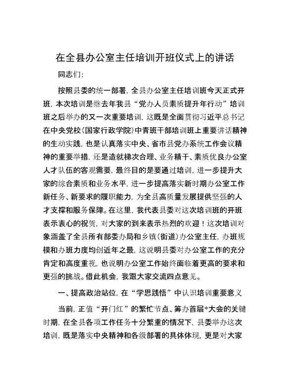 在全县办公室主任培训开班仪式上的讲话 2024-03-29 Word模板 111 购买前,请一定要先点击这里看看,欢迎持续关注,精彩模板每天推送 预览结束,本文件为word文档,一共9页,共4547字,请购买后,下载后查看 购买前,请一定要先点击这里看看,欢迎持续关注,精彩模板每天推送 资源下载下载价格29 RMBVIP免费升级VIP点击检测网盘有效后购买有任何充值和下载问题请加微信:xuexixuexi66 0 演讲发言