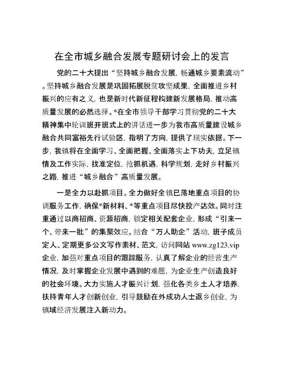在全市城乡融合发展专题研讨会上的发言 2024-03-29 Word模板 125 购买前,请一定要先点击这里看看,欢迎持续关注,精彩模板每天推送 预览结束,本文件为word文档,一共3页,共1323字,请购买后,下载后查看 购买前,请一定要先点击这里看看,欢迎持续关注,精彩模板每天推送 资源下载下载价格29 RMBVIP免费升级VIP点击检测网盘有效后购买有任何充值和下载问题请加微信:xuexixuexi66 0 演讲发言