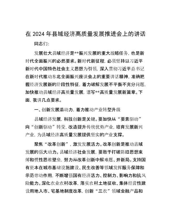 在2024年县域经济高质量发展推进会上的讲话 2024-03-29 Word模板 119 购买前,请一定要先点击这里看看,欢迎持续关注,精彩模板每天推送 预览结束,本文件为word文档,一共5页,共2152字,请购买后,下载后查看 购买前,请一定要先点击这里看看,欢迎持续关注,精彩模板每天推送 资源下载下载价格29 RMBVIP免费升级VIP点击检测网盘有效后购买有任何充值和下载问题请加微信:xuexixuexi66 0 演讲发言