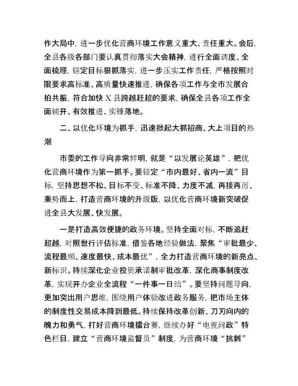 县委书记在优化营商环境工作会议上的讲话提纲 2024-03-29 Word模板 119 购买前,请一定要先点击这里看看,欢迎持续关注,精彩模板每天推送 预览结束,本文件为word文档,一共10页,共4714字,请购买后,下载后查看 购买前,请一定要先点击这里看看,欢迎持续关注,精彩模板每天推送 资源下载下载价格29 RMBVIP免费升级VIP点击检测网盘有效后购买有任何充值和下载问题请加微信:xuexixuexi66 0 演讲发言