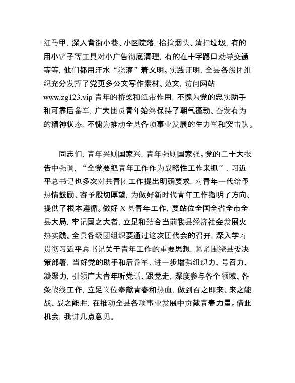 县委书记在共青年团代表大会开幕式上的讲话 2024-03-29 Word模板 122 购买前,请一定要先点击这里看看,欢迎持续关注,精彩模板每天推送 预览结束,本文件为word文档,一共7页,共3385字,请购买后,下载后查看 购买前,请一定要先点击这里看看,欢迎持续关注,精彩模板每天推送 资源下载下载价格29 RMBVIP免费升级VIP点击检测网盘有效后购买有任何充值和下载问题请加微信:xuexixuexi66 0 演讲发言
