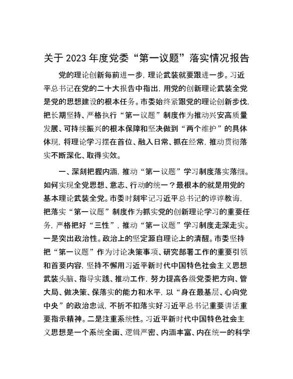 关于2023年度党委“第一议题”落实情况报告 2024-04-01 Word模板 144 购买前,请一定要先点击这里看看,欢迎持续关注,精彩模板每天推送 预览结束,本文件为word文档,一共5页,共2237字,请购买后,下载后查看 购买前,请一定要先点击这里看看,欢迎持续关注,精彩模板每天推送 资源下载下载价格29 RMBVIP免费升级VIP点击检测网盘有效后购买有任何充值和下载问题请加微信:xuexixuexi66 0 总结汇报