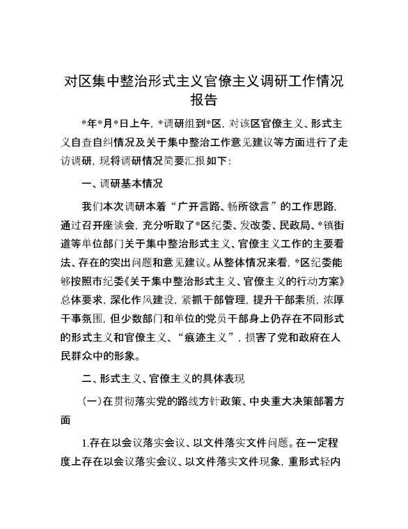 对区集中整治形式主义官僚主义调研工作情况报告 2024-04-01 Word模板 120 购买前,请一定要先点击这里看看,欢迎持续关注,精彩模板每天推送 预览结束,本文件为word文档,一共7页,共2897字,请购买后,下载后查看 购买前,请一定要先点击这里看看,欢迎持续关注,精彩模板每天推送 资源下载下载价格29 RMBVIP免费升级VIP点击检测网盘有效后购买有任何充值和下载问题请加微信:xuexixuexi66 0 总结汇报
