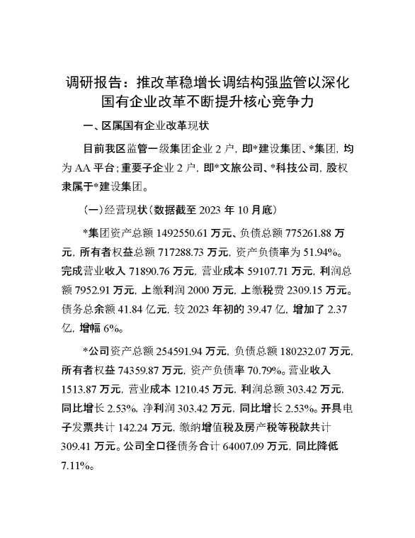 调研报告:推改革 稳增长 调结构 强监管 以深化国有企业改革不断提升核心竞争力 2024-04-01 Word模板 123 购买前,请一定要先点击这里看看,欢迎持续关注,精彩模板每天推送 预览结束,本文件为word文档,一共7页,共3282字,请购买后,下载后查看 购买前,请一定要先点击这里看看,欢迎持续关注,精彩模板每天推送 资源下载下载价格29 RMBVIP免费升级VIP点击检测网盘有效后购买有任何充值和下载问题请加微信:xuexixuexi66 0 总结汇报
