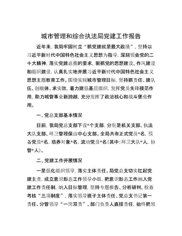 城市管理和综合执法局党建工作报告 2024-04-01 Word模板 89 购买前,请一定要先点击这里看看,欢迎持续关注,精彩模板每天推送 预览结束,本文件为word文档,一共6页,共2900字,请购买后,下载后查看 购买前,请一定要先点击这里看看,欢迎持续关注,精彩模板每天推送 资源下载下载价格29 RMBVIP免费升级VIP点击检测网盘有效后购买有任何充值和下载问题请加微信:xuexixuexi66 0 总结汇报