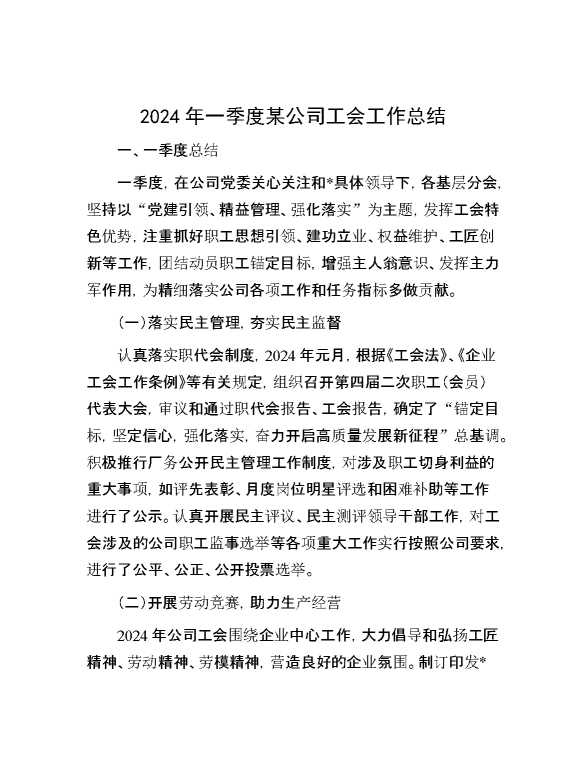 2024年一季度某公司工会工作总结 2024-04-01 Word模板 99 购买前,请一定要先点击这里看看,欢迎持续关注,精彩模板每天推送 预览结束,本文件为word文档,一共5页,共1948字,请购买后,下载后查看 购买前,请一定要先点击这里看看,欢迎持续关注,精彩模板每天推送 资源下载下载价格29 RMBVIP免费升级VIP点击检测网盘有效后购买有任何充值和下载问题请加微信:xuexixuexi66 0 总结汇报
