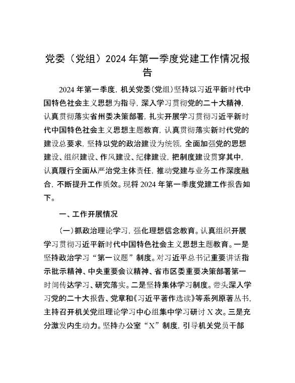 党委(党组)2024年第一季度党建工作情况报告 2024-04-18 Word模板 128 购买前,请一定要先点击这里看看,欢迎持续关注,精彩模板每天推送 预览结束,本文件为word文档,一共4页,共1505字,请购买后,下载后查看 购买前,请一定要先点击这里看看,欢迎持续关注,精彩模板每天推送 资源下载下载价格29 RMBVIP免费升级VIP点击检测网盘有效后购买有任何充值和下载问题请加微信:xuexixuexi66 0 总结汇报