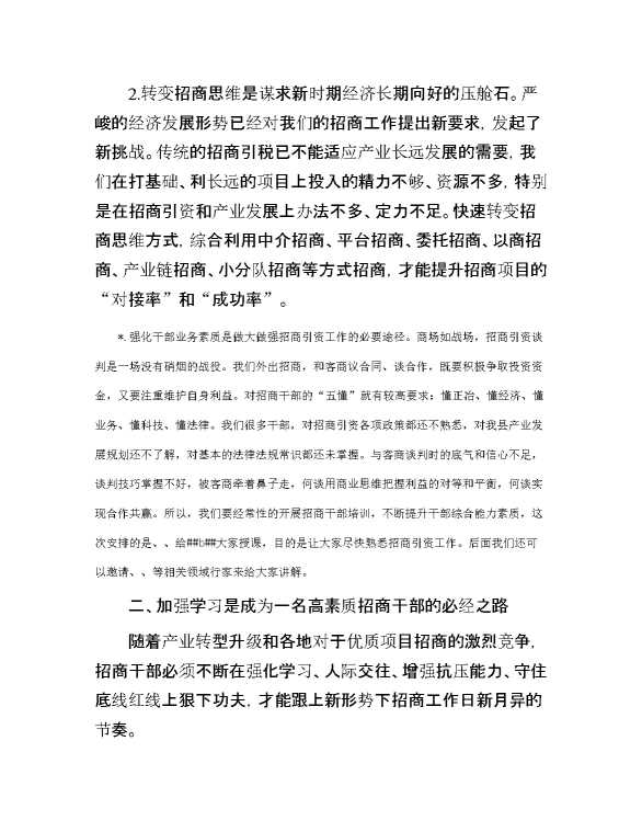 在招商引资工作专题培训班开班仪式上的讲话 2024-04-18 Word模板 112 购买前,请一定要先点击这里看看,欢迎持续关注,精彩模板每天推送 预览结束,本文件为word文档,一共7页,共3101字,请购买后,下载后查看 购买前,请一定要先点击这里看看,欢迎持续关注,精彩模板每天推送 资源下载下载价格29 RMBVIP免费升级VIP点击检测网盘有效后购买有任何充值和下载问题请加微信:xuexixuexi66 0 演讲发言