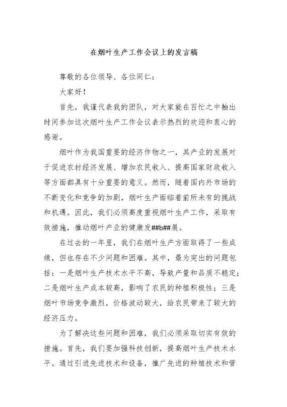 在烟叶生产工作会议上的发言稿 2024-04-18 Word模板 113 购买前,请一定要先点击这里看看,欢迎持续关注,精彩模板每天推送 预览结束,本文件为word文档,一共2页,共673字,请购买后,下载后查看 购买前,请一定要先点击这里看看,欢迎持续关注,精彩模板每天推送 资源下载下载价格29 RMBVIP免费升级VIP点击检测网盘有效后购买有任何充值和下载问题请加微信:xuexixuexi66 0 演讲发言