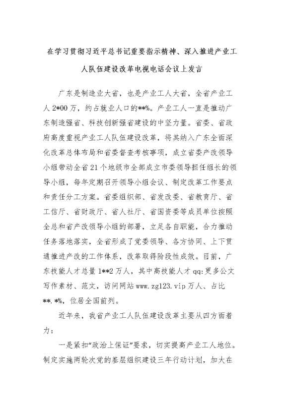 在学习贯彻习近平总书记重要指示精神、深入推进产业工人队伍建设改革电视电话会议上发言 2024-04-18 Word模板 121 购买前,请一定要先点击这里看看,欢迎持续关注,精彩模板每天推送 预览结束,本文件为word文档,一共4页,共1485字,请购买后,下载后查看 购买前,请一定要先点击这里看看,欢迎持续关注,精彩模板每天推送 资源下载下载价格29 RMBVIP免费升级VIP点击检测网盘有效后购买有任何充值和下载问题请加微信:xuexixuexi66 0 演讲发言