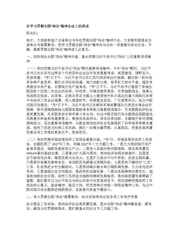 在学习贯彻全国“两会”精神会议上的讲话 2024-04-18 Word模板 117 购买前,请一定要先点击这里看看,欢迎持续关注,精彩模板每天推送 预览结束,本文件为word文档,一共3页,共2363字,请购买后,下载后查看 购买前,请一定要先点击这里看看,欢迎持续关注,精彩模板每天推送 资源下载下载价格29 RMBVIP免费升级VIP点击检测网盘有效后购买有任何充值和下载问题请加微信:xuexixuexi66 0 演讲发言