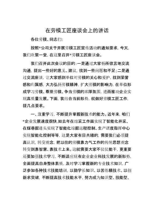 在劳模工匠座谈会上的讲话 2024-04-18 Word模板 91 购买前,请一定要先点击这里看看,欢迎持续关注,精彩模板每天推送 预览结束,本文件为word文档,一共3页,共1483字,请购买后,下载后查看 购买前,请一定要先点击这里看看,欢迎持续关注,精彩模板每天推送 资源下载下载价格29 RMBVIP免费升级VIP点击检测网盘有效后购买有任何充值和下载问题请加微信:xuexixuexi66 0 演讲发言