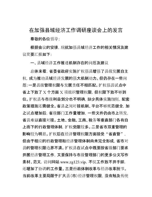 在加强县域经济工作调研座谈会上的发言 2024-04-18 Word模板 89 购买前,请一定要先点击这里看看,欢迎持续关注,精彩模板每天推送 预览结束,本文件为word文档,一共9页,共4128字,请购买后,下载后查看 购买前,请一定要先点击这里看看,欢迎持续关注,精彩模板每天推送 资源下载下载价格29 RMBVIP免费升级VIP点击检测网盘有效后购买有任何充值和下载问题请加微信:xuexixuexi66 0 演讲发言