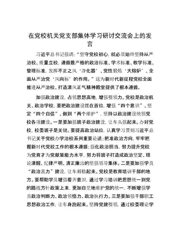 在党校机关党支部集体学习研讨交流会上的发言 2024-04-18 Word模板 87 购买前,请一定要先点击这里看看,欢迎持续关注,精彩模板每天推送 预览结束,本文件为word文档,一共3页,共1487字,请购买后,下载后查看 购买前,请一定要先点击这里看看,欢迎持续关注,精彩模板每天推送 资源下载下载价格29 RMBVIP免费升级VIP点击检测网盘有效后购买有任何充值和下载问题请加微信:xuexixuexi66 0 演讲发言