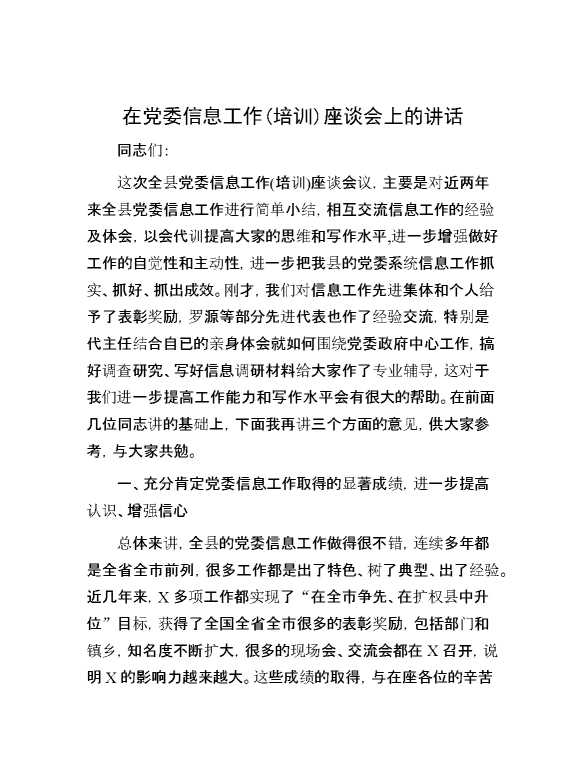 在党委信息工作(培训)座谈会上的讲话 2024-04-18 Word模板 91 购买前,请一定要先点击这里看看,欢迎持续关注,精彩模板每天推送 预览结束,本文件为word文档,一共12页,共5982字,请购买后,下载后查看 购买前,请一定要先点击这里看看,欢迎持续关注,精彩模板每天推送 资源下载下载价格29 RMBVIP免费升级VIP点击检测网盘有效后购买有任何充值和下载问题请加微信:xuexixuexi66 0 演讲发言