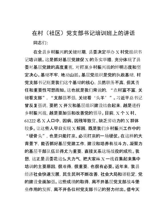 在村(社区)党支部书记培训班上的讲话【29316】 2024-04-18 Word模板 89 购买前,请一定要先点击这里看看,欢迎持续关注,精彩模板每天推送 预览结束,本文件为word文档,一共13页,共6562字,请购买后,下载后查看 购买前,请一定要先点击这里看看,欢迎持续关注,精彩模板每天推送 资源下载下载价格29 RMBVIP免费升级VIP点击检测网盘有效后购买有任何充值和下载问题请加微信:xuexixuexi66 0 演讲发言