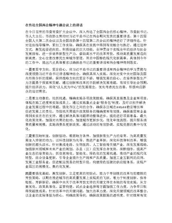 在传达全国两会精神专题会议上的讲话 2024-04-18 Word模板 90 购买前,请一定要先点击这里看看,欢迎持续关注,精彩模板每天推送 预览结束,本文件为word文档,一共2页,共1799字,请购买后,下载后查看 购买前,请一定要先点击这里看看,欢迎持续关注,精彩模板每天推送 资源下载下载价格29 RMBVIP免费升级VIP点击检测网盘有效后购买有任何充值和下载问题请加微信:xuexixuexi66 0 演讲发言