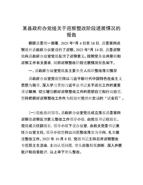 某县政府办党组关于巡察整改阶段进展情况的报告 2024-04-23 Word模板 106 购买前,请一定要先点击这里看看,欢迎持续关注,精彩模板每天推送 预览结束,本文件为word文档,一共7页,共2638字,请购买后,下载后查看 购买前,请一定要先点击这里看看,欢迎持续关注,精彩模板每天推送 资源下载下载价格29 RMBVIP免费升级VIP点击检测网盘有效后购买有任何充值和下载问题请加微信:xuexixuexi66 0 总结汇报
