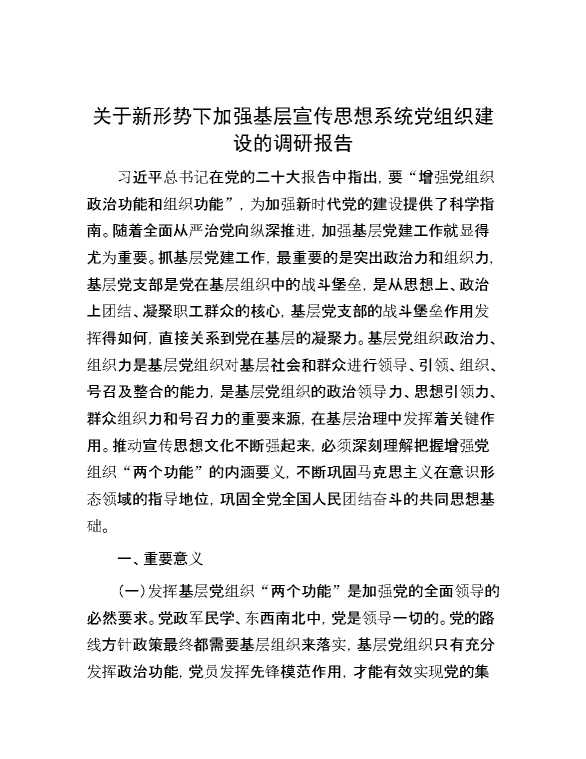 关于新形势下加强基层宣传思想系统党组织建设的调研报告 2024-04-23 Word模板 117 购买前,请一定要先点击这里看看,欢迎持续关注,精彩模板每天推送 预览结束,本文件为word文档,一共6页,共2807字,请购买后,下载后查看 购买前,请一定要先点击这里看看,欢迎持续关注,精彩模板每天推送 资源下载下载价格29 RMBVIP免费升级VIP点击检测网盘有效后购买有任何充值和下载问题请加微信:xuexixuexi66 0 总结汇报