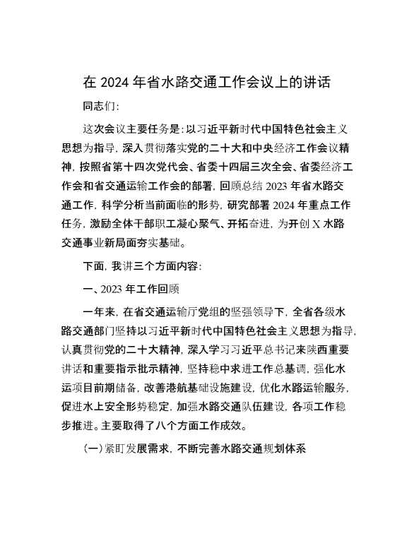 在2024年省水路交通工作会议上的讲话 2024-04-23 Word模板 110 购买前,请一定要先点击这里看看,欢迎持续关注,精彩模板每天推送 预览结束,本文件为word文档,一共20页,共9949字,请购买后,下载后查看 购买前,请一定要先点击这里看看,欢迎持续关注,精彩模板每天推送 资源下载下载价格29 RMBVIP免费升级VIP点击检测网盘有效后购买有任何充值和下载问题请加微信:xuexixuexi66 0 演讲发言