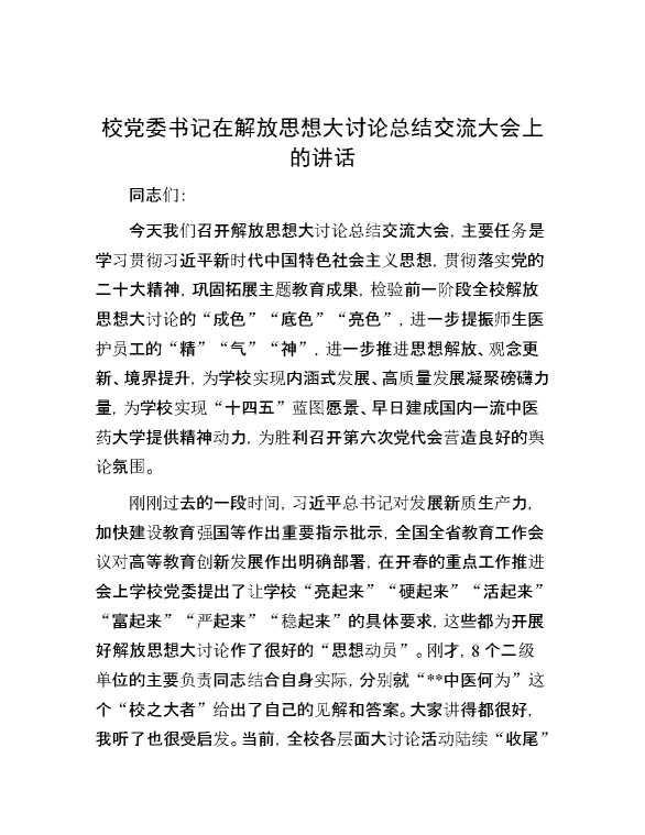 校党委书记在解放思想大讨论总结交流大会上的讲话 2024-04-23 Word模板 118 购买前,请一定要先点击这里看看,欢迎持续关注,精彩模板每天推送 预览结束,本文件为word文档,一共9页,共4197字,请购买后,下载后查看 购买前,请一定要先点击这里看看,欢迎持续关注,精彩模板每天推送 资源下载下载价格29 RMBVIP免费升级VIP点击检测网盘有效后购买有任何充值和下载问题请加微信:xuexixuexi66 0 演讲发言