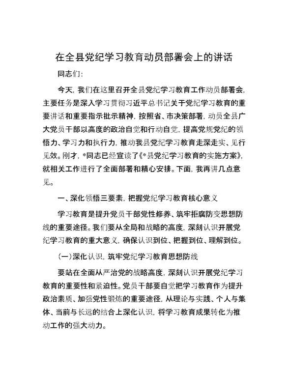在全县党纪学习教育动员部署会上的讲话 2024-04-23 Word模板 120 购买前,请一定要先点击这里看看,欢迎持续关注,精彩模板每天推送 预览结束,本文件为word文档,一共4页,共1712字,请购买后,下载后查看 购买前,请一定要先点击这里看看,欢迎持续关注,精彩模板每天推送 资源下载下载价格29 RMBVIP免费升级VIP点击检测网盘有效后购买有任何充值和下载问题请加微信:xuexixuexi66 0 演讲发言