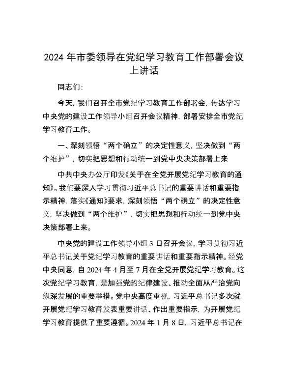 2024年市委领导在党纪学习教育工作部署会议上讲话 2024-04-23 Word模板 122 购买前,请一定要先点击这里看看,欢迎持续关注,精彩模板每天推送 预览结束,本文件为word文档,一共15页,共7860字,请购买后,下载后查看 购买前,请一定要先点击这里看看,欢迎持续关注,精彩模板每天推送 资源下载下载价格29 RMBVIP免费升级VIP点击检测网盘有效后购买有任何充值和下载问题请加微信:xuexixuexi66 0 演讲发言