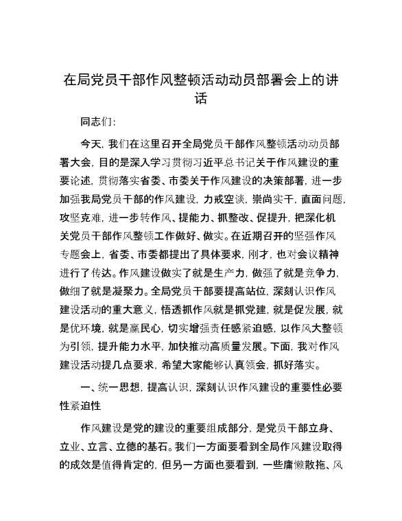 在局党员干部作风整顿活动动员部署会上的讲话 2024-04-23 Word模板 120 购买前,请一定要先点击这里看看,欢迎持续关注,精彩模板每天推送 预览结束,本文件为word文档,一共6页,共2934字,请购买后,下载后查看 购买前,请一定要先点击这里看看,欢迎持续关注,精彩模板每天推送 资源下载下载价格29 RMBVIP免费升级VIP点击检测网盘有效后购买有任何充值和下载问题请加微信:xuexixuexi66 0 演讲发言