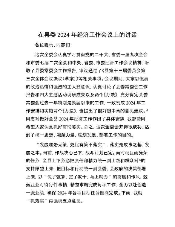 在县委2024年经济工作会议上的讲话 2024-04-23 Word模板 127 购买前,请一定要先点击这里看看,欢迎持续关注,精彩模板每天推送 预览结束,本文件为word文档,一共6页,共2682字,请购买后,下载后查看 购买前,请一定要先点击这里看看,欢迎持续关注,精彩模板每天推送 资源下载下载价格29 RMBVIP免费升级VIP点击检测网盘有效后购买有任何充值和下载问题请加微信:xuexixuexi66 0 演讲发言