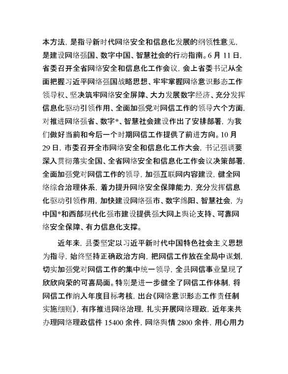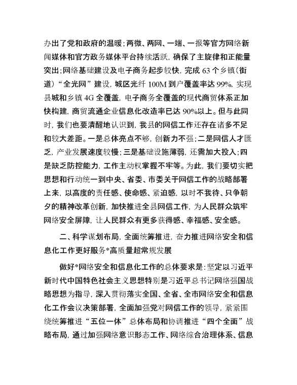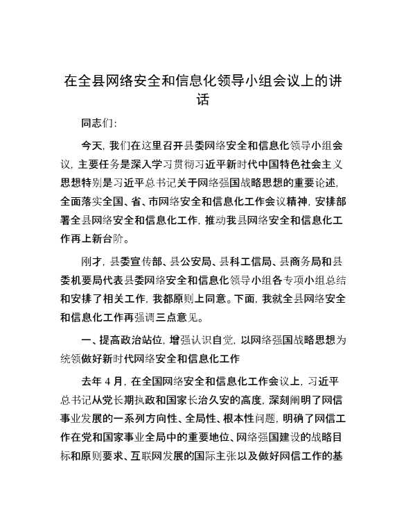 在全县网络安全和信息化领导小组会议上的讲话 2024-04-23 Word模板 99 购买前,请一定要先点击这里看看,欢迎持续关注,精彩模板每天推送 预览结束,本文件为word文档,一共9页,共4045字,请购买后,下载后查看 购买前,请一定要先点击这里看看,欢迎持续关注,精彩模板每天推送 资源下载下载价格29 RMBVIP免费升级VIP点击检测网盘有效后购买有任何充值和下载问题请加微信:xuexixuexi66 0 演讲发言