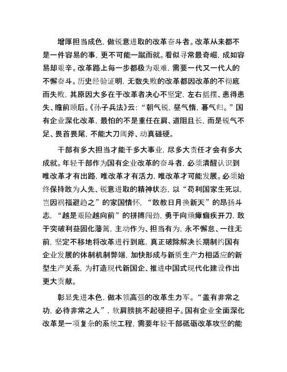 年轻干部要当好改革的生力军 2024-04-27 Word模板 89 购买前,请一定要先点击这里看看,欢迎持续关注,精彩模板每天推送 预览结束,本文件为word文档,一共4页,共1927字,请购买后,下载后查看 购买前,请一定要先点击这里看看,欢迎持续关注,精彩模板每天推送 资源下载下载价格29 RMBVIP免费升级VIP点击检测网盘有效后购买有任何充值和下载问题请加微信:xuexixuexi66 0 理论学习