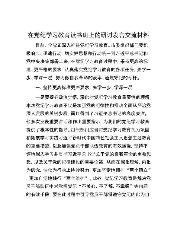 在党纪学习教育读书班上的研讨发言交流材料 2024-04-27 Word模板 98 购买前,请一定要先点击这里看看,欢迎持续关注,精彩模板每天推送 预览结束,本文件为word文档,一共5页,共2261字,请购买后,下载后查看 购买前,请一定要先点击这里看看,欢迎持续关注,精彩模板每天推送 资源下载下载价格29 RMBVIP免费升级VIP点击检测网盘有效后购买有任何充值和下载问题请加微信:xuexixuexi66 0 演讲发言