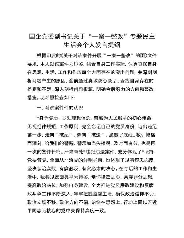 国企党委副书记关于“一案一整改”专题民主生活会个人发言提纲 2024-04-27 Word模板 124 购买前,请一定要先点击这里看看,欢迎持续关注,精彩模板每天推送 预览结束,本文件为word文档,一共9页,共4191字,请购买后,下载后查看 购买前,请一定要先点击这里看看,欢迎持续关注,精彩模板每天推送 资源下载下载价格29 RMBVIP免费升级VIP点击检测网盘有效后购买有任何充值和下载问题请加微信:xuexixuexi66 0 演讲发言