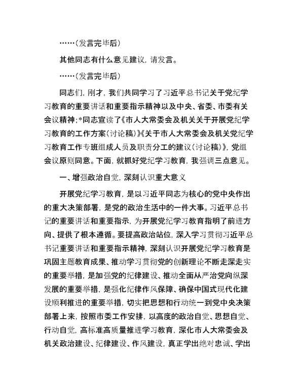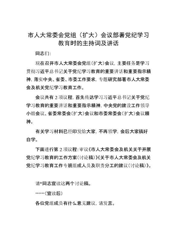市人大常委会党组(扩大)会议部署党纪学习教育时的主持词及讲话 2024-04-27 Word模板 112 购买前,请一定要先点击这里看看,欢迎持续关注,精彩模板每天推送 预览结束,本文件为word文档,一共5页,共1934字,请购买后,下载后查看 购买前,请一定要先点击这里看看,欢迎持续关注,精彩模板每天推送 资源下载下载价格29 RMBVIP免费升级VIP点击检测网盘有效后购买有任何充值和下载问题请加微信:xuexixuexi66 0 演讲发言