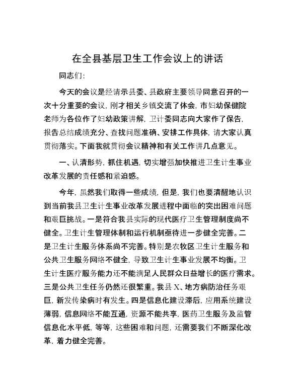 在全县基层卫生工作会议上的讲话 2024-04-27 Word模板 116 购买前,请一定要先点击这里看看,欢迎持续关注,精彩模板每天推送 预览结束,本文件为word文档,一共5页,共2251字,请购买后,下载后查看 购买前,请一定要先点击这里看看,欢迎持续关注,精彩模板每天推送 资源下载下载价格29 RMBVIP免费升级VIP点击检测网盘有效后购买有任何充值和下载问题请加微信:xuexixuexi66 0 演讲发言