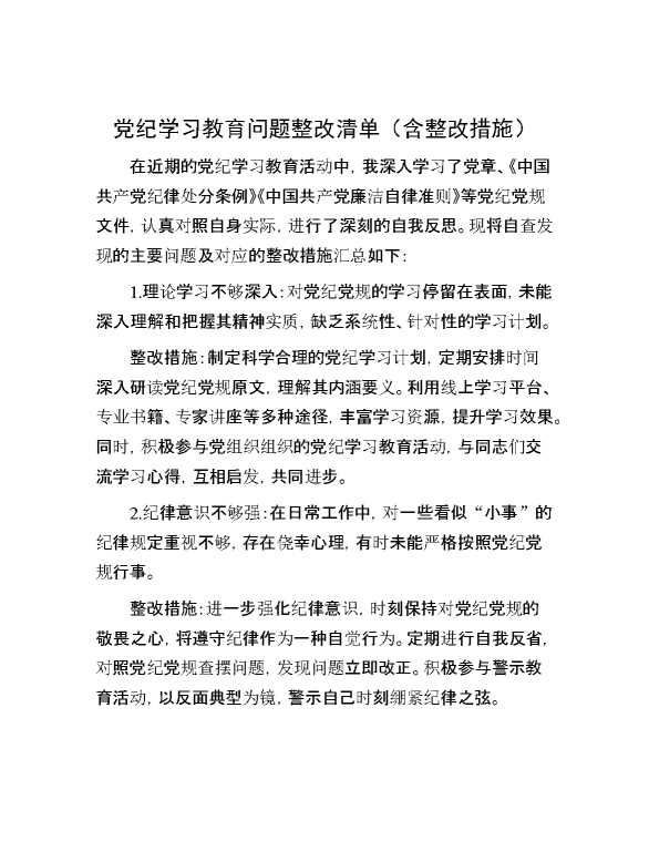 党纪学习教育问题整改清单(含整改措施)【30909】 2024-05-09 Word模板 109 购买前,请一定要先点击这里看看,欢迎持续关注,精彩模板每天推送 预览结束,本文件为word文档,一共3页,共1086字,请购买后,下载后查看 购买前,请一定要先点击这里看看,欢迎持续关注,精彩模板每天推送 资源下载下载价格29 RMBVIP免费升级VIP点击检测网盘有效后购买有任何充值和下载问题请加微信:xuexixuexi66 0 党课及生活会