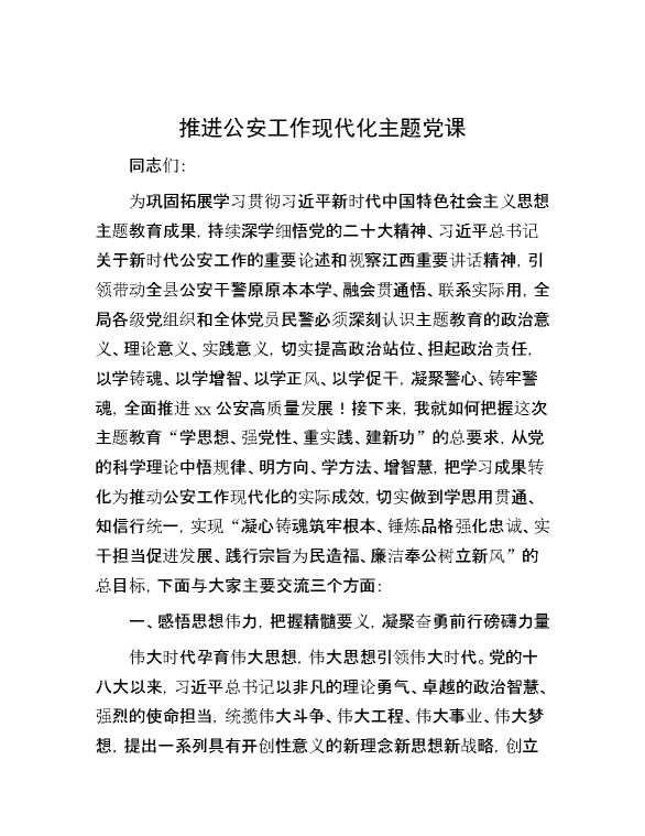 推进公安工作现代化主题党课 2024-05-09 Word模板 151 购买前,请一定要先点击这里看看,欢迎持续关注,精彩模板每天推送 预览结束,本文件为word文档,一共15页,共7469字,请购买后,下载后查看 购买前,请一定要先点击这里看看,欢迎持续关注,精彩模板每天推送 资源下载下载价格29 RMBVIP免费升级VIP点击检测网盘有效后购买有任何充值和下载问题请加微信:xuexixuexi66 0 党课及生活会