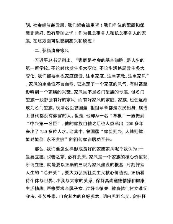 在清廉家风座谈会上的讲话 2024-05-12 Word模板 106 购买前,请一定要先点击这里看看,欢迎持续关注,精彩模板每天推送 预览结束,本文件为word文档,一共4页,共1629字,请购买后,下载后查看 购买前,请一定要先点击这里看看,欢迎持续关注,精彩模板每天推送 资源下载下载价格29 RMBVIP免费升级VIP点击检测网盘有效后购买有任何充值和下载问题请加微信:xuexixuexi66 0 演讲发言