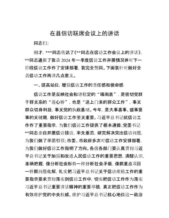 在县信访联席会议上的讲话 2024-05-12 Word模板 116 购买前,请一定要先点击这里看看,欢迎持续关注,精彩模板每天推送 预览结束,本文件为word文档,一共4页,共1737字,请购买后,下载后查看 购买前,请一定要先点击这里看看,欢迎持续关注,精彩模板每天推送 资源下载下载价格29 RMBVIP免费升级VIP点击检测网盘有效后购买有任何充值和下载问题请加微信:xuexixuexi66 0 演讲发言
