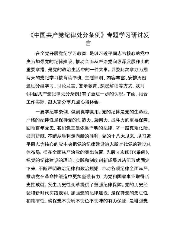 《中国共产党纪律处分条例》专题学习研讨发言 2024-05-12 Word模板 112 购买前,请一定要先点击这里看看,欢迎持续关注,精彩模板每天推送 预览结束,本文件为word文档,一共3页,共1249字,请购买后,下载后查看 购买前,请一定要先点击这里看看,欢迎持续关注,精彩模板每天推送 资源下载下载价格29 RMBVIP免费升级VIP点击检测网盘有效后购买有任何充值和下载问题请加微信:xuexixuexi66 0 演讲发言