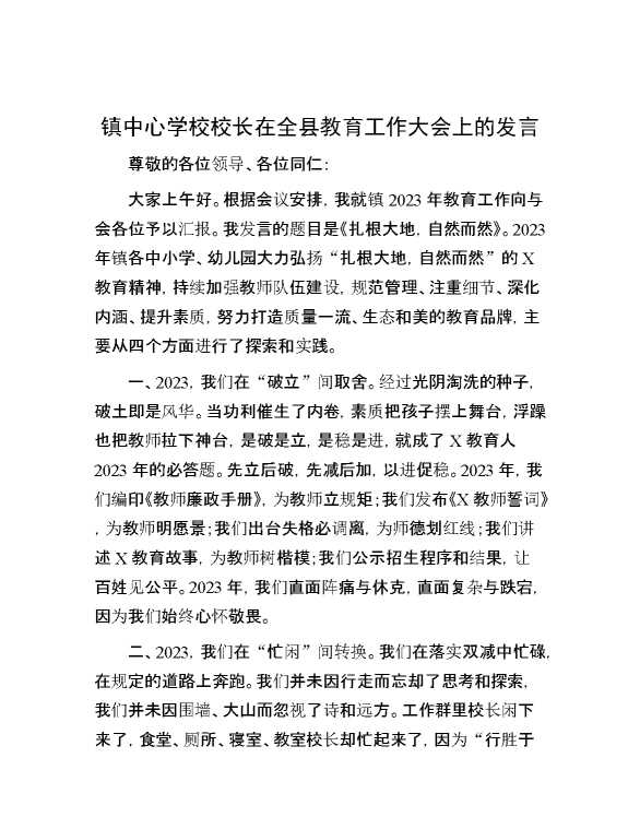 镇中心学校校长在全县教育工作大会上的发言 2024-05-12 Word模板 106 购买前,请一定要先点击这里看看,欢迎持续关注,精彩模板每天推送 预览结束,本文件为word文档,一共3页,共1174字,请购买后,下载后查看 购买前,请一定要先点击这里看看,欢迎持续关注,精彩模板每天推送 资源下载下载价格29 RMBVIP免费升级VIP点击检测网盘有效后购买有任何充值和下载问题请加微信:xuexixuexi66 0 演讲发言
